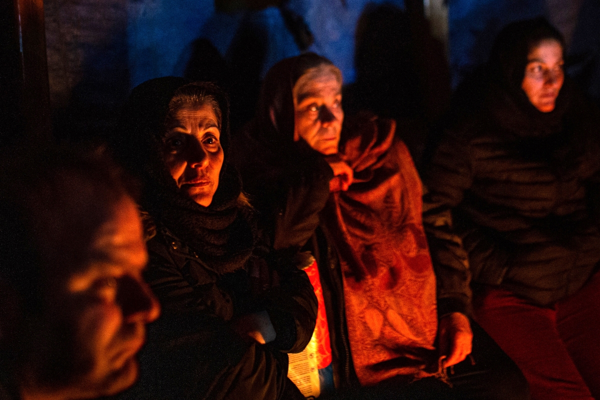 当地时间2023年2月7日,土耳其哈塔伊,家人们围坐在篝火旁取暖,火光照亮了他们的脸。